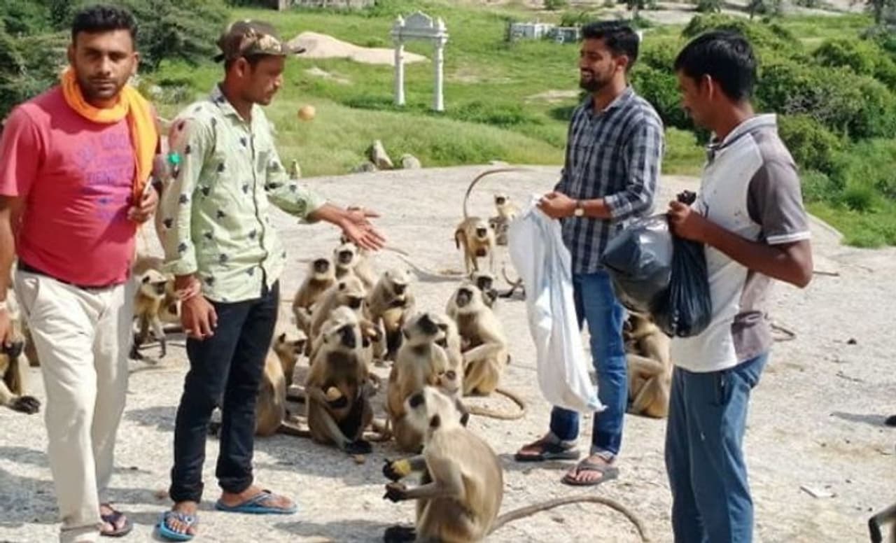 बंदरों के लिए भोजन लेकर चले जाते हैं।