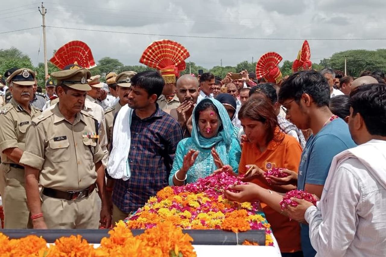 शहीद का अंतिम संस्कार राजकीय सम्मान के साथ किया गया। अतिम के अंतिम संस्कार में कई गावों के लोग शामिल हुए। इस दौरान लोग जिंदाबाद के भी नारे लगाते रहे। वहीं, पत्नी अपने शहीद पति को बड़े गौर से निहारती रही।