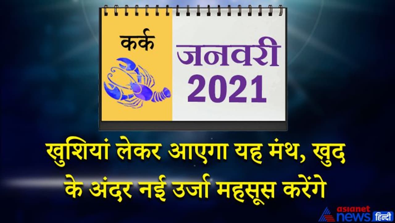 इस महीने चंद्रमा कर्क राशि का लग्न में, केतु-शुक्र वृश्चिक राशि का पांचवें भाव में, सूर्य-बुध धनु राशि का छठे भाव में, गुरु-शनि मकर राशि का सातवें भाव में, मंगल मेष राशि का दसवें भाव में, राहु वृषभ राशि का ग्यारहवें भाव में रहेगा। साल के पहले महीने का प्रथम सप्ताह आपके लिए खुशियां लेकर आएगा। भौतिक सुख-सुविधाओं की प्राप्ति होगी। आप स्वयं के अंदर एक नई ऊर्जा महसूस करेंगे। मेहनत का पूरा-पूरा लाभ आपको इस समय मिलेगा। बच्चों के साथ समय बीताने का मौका मिलेगा। महीने के दूसरे सप्ताह में हेल्थ से जुड़ी परेशानी सामने आ सकती है। पिता-पुत्र में किसी बात पर अनबन हो सकती है, लेकिन समय रहते मामला ठंडा हो जाएगा। 9 जनवरी के बाद का समय विद्यार्थियों के लिए शुभ रहेगा। ऑफिस में मनमाफिक माहौल मिलने से अपना काम और भी बेहतर तरीके से कर पाएंगे। महीने का मध्य का समय थोड़ा चिंताजनक रह सकता है। आपमें धैर्य की कमी रहेगी, जिसके कारण किसी से आपका विवाद हो सकता है। 25 जनवरी के बाद का समय अनुकूल रहेगा। सहकर्मी मददगार साबित होंगे। जीवन की गाड़ी एक बार फिर पटरी पर लौट आएगी।