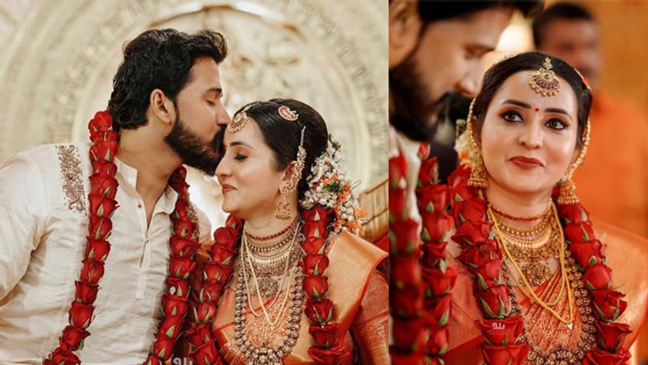 मुंबई/ हैदराबाद. साउथ फिल्म इंडस्ट्री की जानीमानी एक्ट्रेस भामा यानी रीथिका राजेंद्र कुरूप गुरुवार को शादी के बंधन में बंध गई हैं। उन्होंने दुबई बेस्ड बिजनेसमैन अरुण संग सात फेरे लिए। भामा की शादी की कुछ फोटोज सामने आई हैं। हैवी गोल्ड नेकलेस, मांग टीका, लाल रंग की बनारसी साड़ी और हाथों में भरी-भरी चूड़ियां पहन भामा शादी में बेहद खूबसूरत नजर आ रही थी। शादी के तुरंत बाद दूल्हे ने अपनी नई नवेली दुल्हन के माथे को चूम लिया। बता दें कि एक्ट्रेस की शादी कोट्टयम स्थित कन्वेंशन सेंटर में हुई।