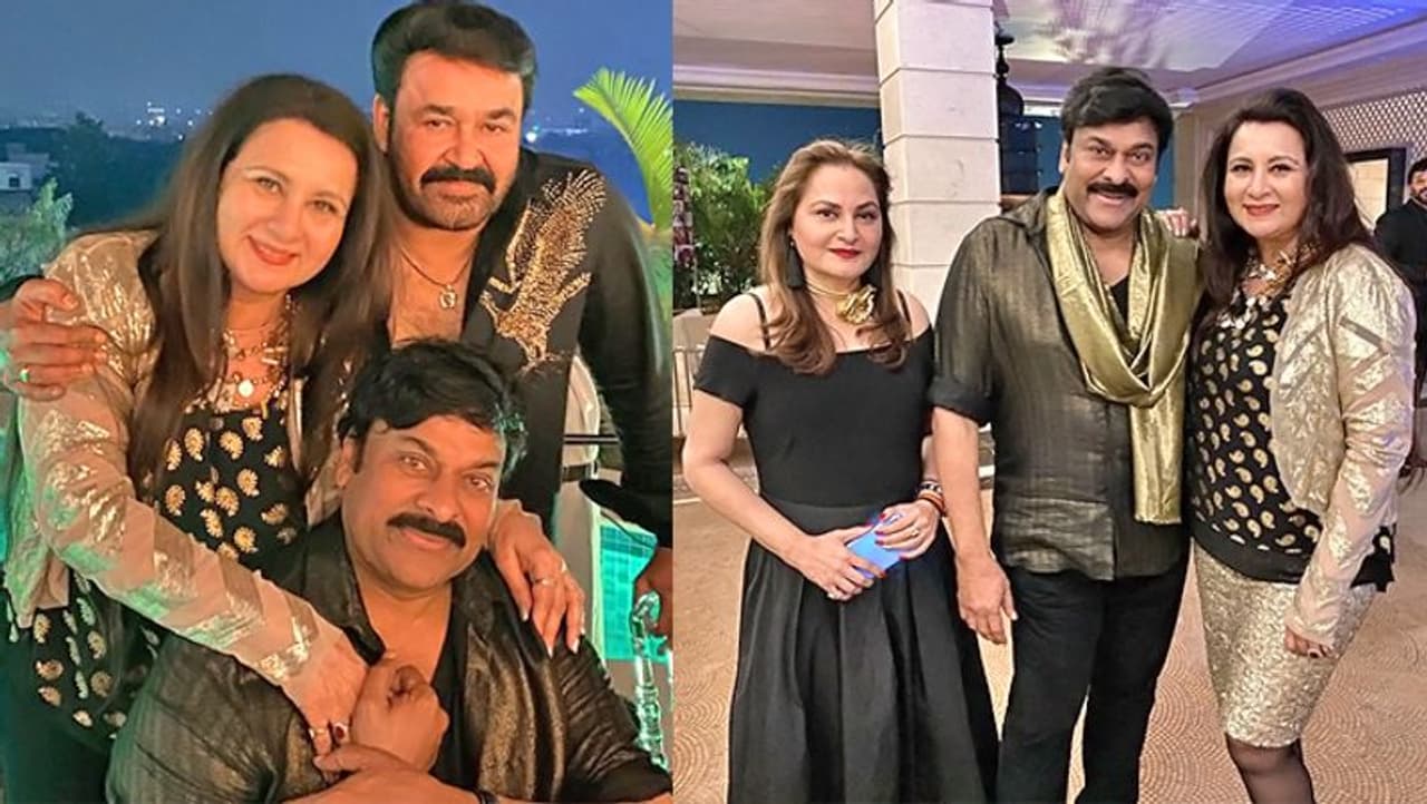 80 के दशक के स्टार्स के लिए हुई रीयूनियन पार्टी में चिरंजीवी और मोहनलाल के साथ पूनम ढिल्लों। दूसरी ओर चिरंजीवी के साथ जयाप्रदा और पूनम ढिल्लों।