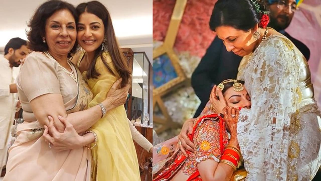 एक अन्य फोटो में काजल अपनी सासू मां के साथ गले से लिपटी हुई दिख रही हैं और उनकी सास उन्हें दोनों हाथों से प्यार जता रही हैं।