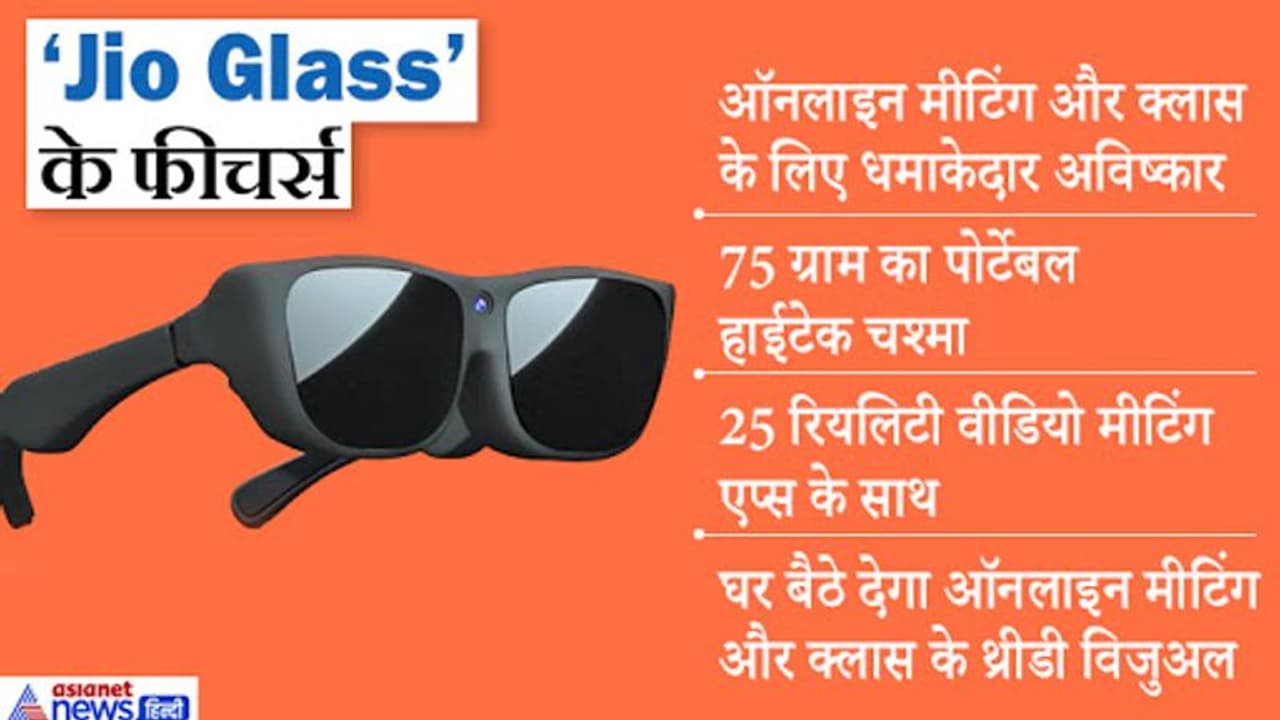 टेक डेस्क. .  Jio Glass Features: रिलायंस इंडस्ट्रीज लिमिटेड की 43वीं आमसभा को संबोधित करते हुए मुकेश अंबानी ने रिलायंस जियो 5जी तकनीक का ऐलान किया है। ग्रुप के चेयरमैन ने कहा कि इस तकनीक को पूरी तरह से भारत में ही तैयार किया गया है। उन्होंने कहा कि यह तकनीक पीएम नरेंद्र मोदी के आत्मनिर्भर भारत अभियान को समर्पित है। इसके साथ ही लॉकडाउन और कोरोनो महामारी के कारण सबसे ज्यादा चिंता के विषय ऑनलाइन मीटिंग और क्लास के लिए भी एक हाईटेक चश्मा लॉन्च किया गया है। जियो इस कूल प्रोडक्ट का नाम है जियोग्लास (Jio Glass) जो आज के समय के लिए धमाकेदार अविष्कार माना जा रहा है। इसके साथ लोगों को ऑनलाइन मीटिंग और क्लास में रियलिटी जैसा फील आएगा। हम आपको जियोग्लास के फीचर्स (Jio Glass Features) बता रहे हैं।