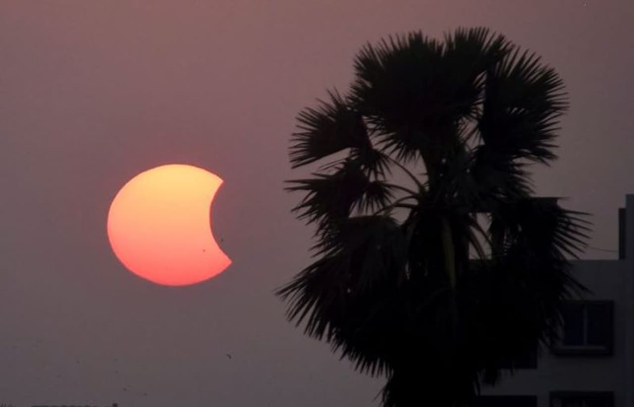 यह तस्वीर बिहार की राजधानी पटना की है, जहां सूर्य ग्रहण का आंशिक दृश्य दिखाई दिया। यह इस साल का अंतिम सूर्य ग्रहण था।