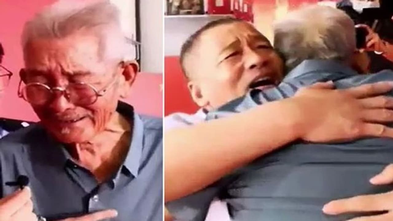 58 साल बाद बाप-बेटे की मुलाकात की तस्‍वीरें दुनियाभर में तेजी से वायरल हो रही है। जिसने भी इनका प्यार देखा, वो इमोशनल हो गया। जाओझुआंग शहर के पब्लिक सेफ्टी डिपार्टमेंट ने दोनों का वीडियो शेयर किया है।