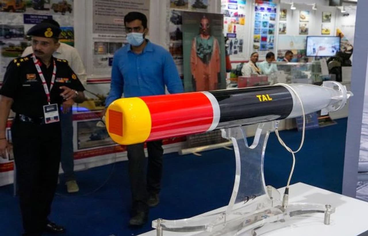 गुजरात के गांधीनगर में डिफेंस एक्सपो प्रदर्शनी में हल्के वजन वाले खास टीएएल एक्सपी टारपीडो का प्रदर्शन किया गया।