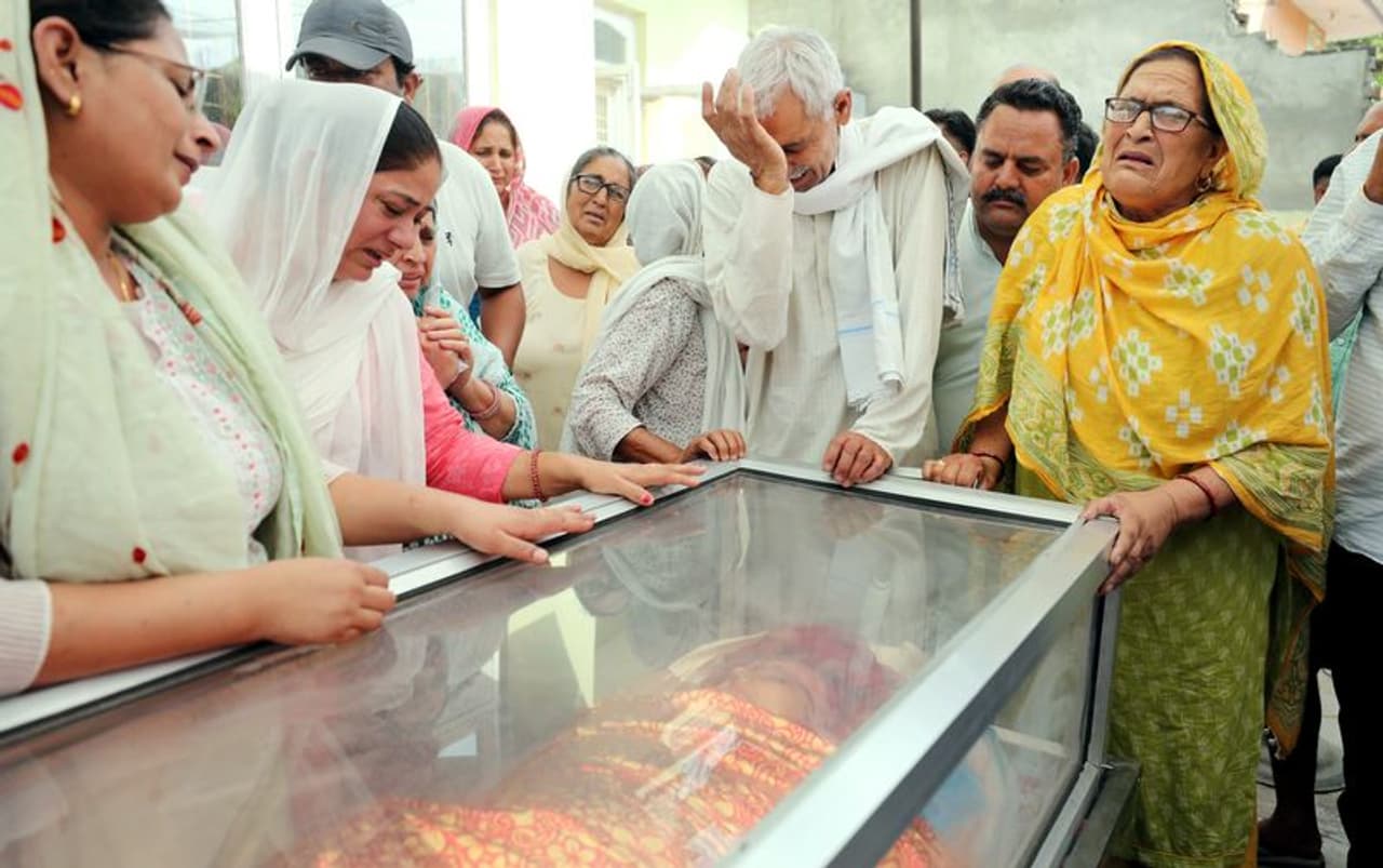 कश्मीर में आतंकियों हमले में मारी गई हिंदू कश्मीरी टीचर रजनी बाला के अंतिम संस्कार के दौरान उनके परिजन, रजनी के सिर में गोली मारकर हत्या कर दी गई थी।