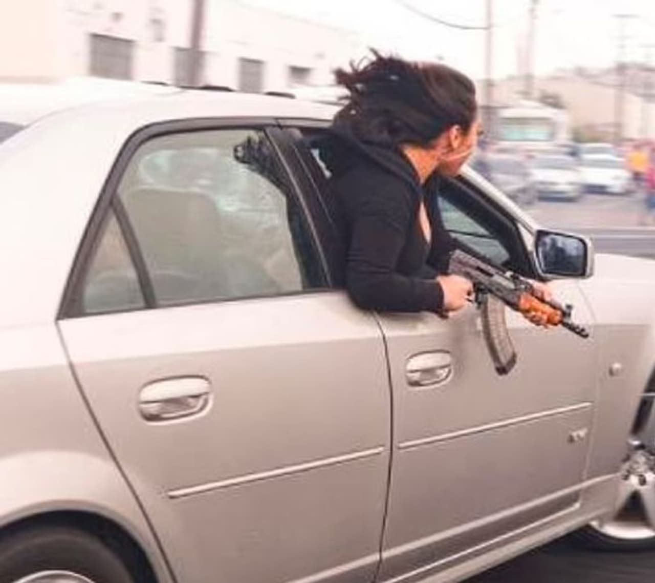 सैन फ्रांसिस्को की सड़कों पर कार के बाहर झांकती एक महिला की तस्वीर सोशल मीडिया पर वायरल हो रही है। महिला के हाथ में एके- 47 है। पुलिस ने महिला की तस्वीर जारी कर बताया है कि कार को जब्त कर लिया गया है। हालांकि अभी तक ये साफ नहीं है कि महिला को गिरफ्तार किया गया है या नहीं। अभी महिला की पहचान उजागर नहीं की गई है। मामला बार्नवेल्ड और मैककिनोन एवेन्यू इलाके में अवैध स्टंट ड्राइविंग का भी है। तस्वीरों में देखें, पुलिस ने कार को कैसे किया जब्त...