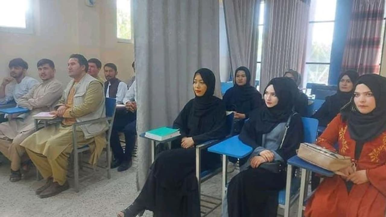 तस्वीर देखकर साफ हो रहा है कि तालिबान का राज आज चुका है। क्लास में बैठी सभी लड़कियों के सिर ढके हुए दिख रहे हैं। इतना ही नहीं, उनके चेहरे पर एक डर भी है। कलम उठाने की दहशत भी है। और इन सबके बीच वह पर्दा, जो क्लास को नहीं बांटता बल्कि तालिबान की सोच को जाहिर करता है।