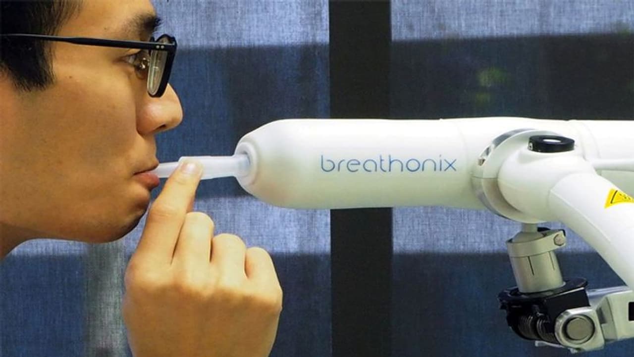 ब्रेथ एनालाइजर या ब्रीथोनिक्स एक ऐसी डिवाइस है, जिससे सांसों के जरिए किसी इंसान के शरीर में कोविड 19 संक्रमण का पता लगाया जा सकता है। सिंगापुर की नेशनल यूनिवर्सिटी ने इसे बनाया है और इसे अस्थायी रूप से टेस्टिंग की मंजूरी भी दे दी है।
