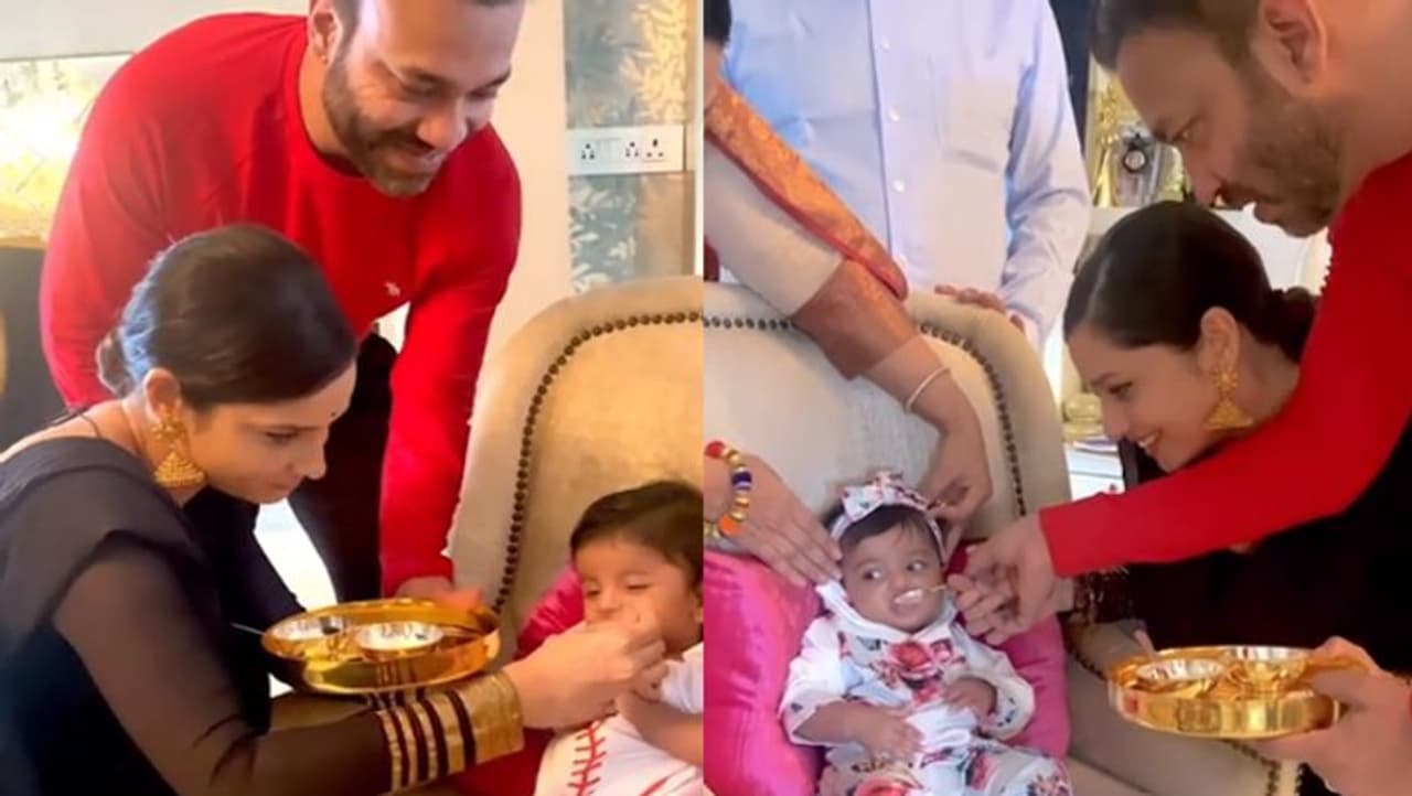 मुंबई. टीवी एक्ट्रेस अंकिता लोखंडे (ankita lokhande) ने हाल ही में ब्वॉयफ्रेंड विक्की जैन (vicky jain) के साथ एक वीडियो अपने इंस्टाग्राम पर शेयर किया है। इस वीडियो में वे विक्की के भांजे-भांजी का अन्नप्राशन करती हुई दिखाई दे रही हैं। ये बच्चे विक्की की बहन वर्षा जैन के हैं। इस वीडियो में वह खुद को विक्की जैन के भांजे-भांजी की मामी और विक्की को मामा बता रही हैं। अंकिता बच्चों को प्यार से खिला रही हैं। अंकिता बच्चे को खिलाते वक्त बोलती हैं- ये लो मामा और मामी की तरफ से। वहीं, दूसरे वीडियो में वह विक्की को थाली पकड़ाकर बोलती हैं- पकड़िए एक मिनट बेबी। इसे शेयर करते हुए अंकिता ने कैप्शन लिखा- अबीर और अबीरा का अन्नप्राशन। इस वीडियो को फैंस खूब पसंद कर रहे हैं, और कमेंट्स भी कर रहे हैं।