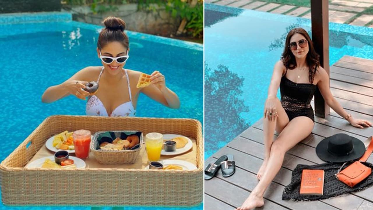 ब्लैक बिकिनी में धूप सेंकती तो कभी पूल में नाश्ता करती दिखी 'बेलन वाली बहू', PHOTOS