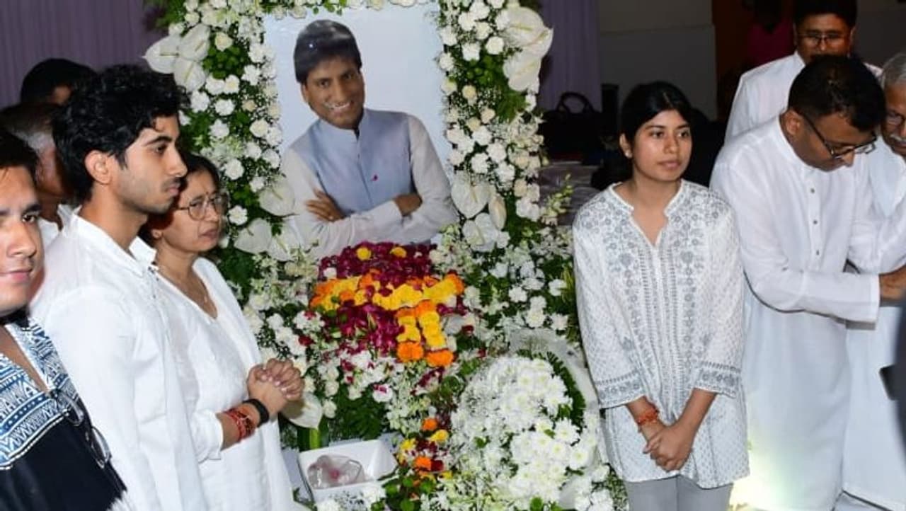 राजू श्रीवास्तव की प्रार्थना सभा के दौरान उनकी पत्नी शिखा श्रीवास्तव, बेटी अंतरा श्रीवास्तव , बेटे आयुष्मान श्रीवास्तव समेत पूरा परिवार इस्कॉन मंदिर में मौजूद था।