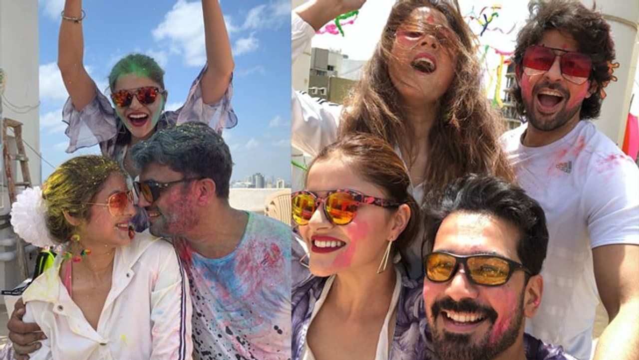 आरती सिंह, गुरमीत चौधरी और देबिना बनर्जी ने भी खूब होली खेली।