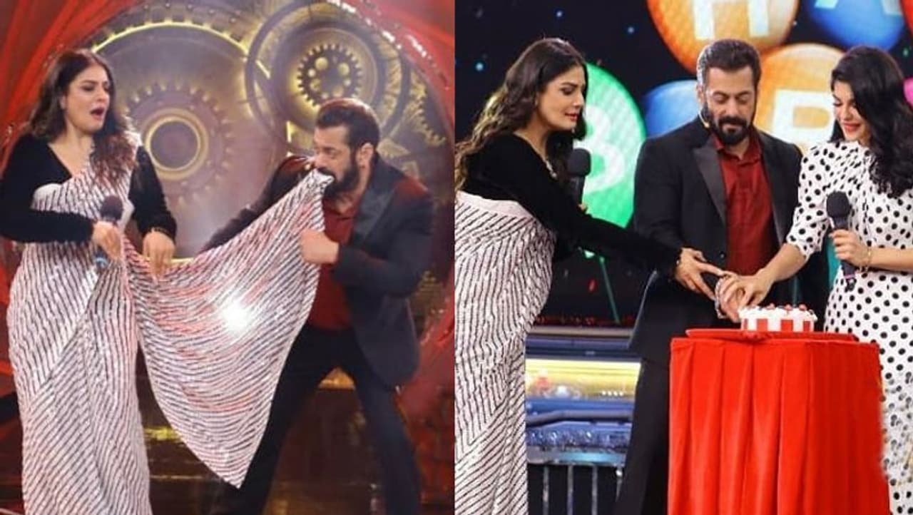 रवीना और जैकलीन के साथ सलमान ने मिलकर खूब हंसी मजाक भी किया। इस दौरान सलमान खान ने दोनों एक्ट्रेसेस का बिग बॉस टेस्ट लिया कि उन्हें शो की कितनी जानकारी है। रवीना टंडन, जैकलीन फर्नांडिस ने सही जवाब दिए, इसपर सलमान ने कहा कि दोनों का बिग बॉस से सीधा कनेक्शन हैं।