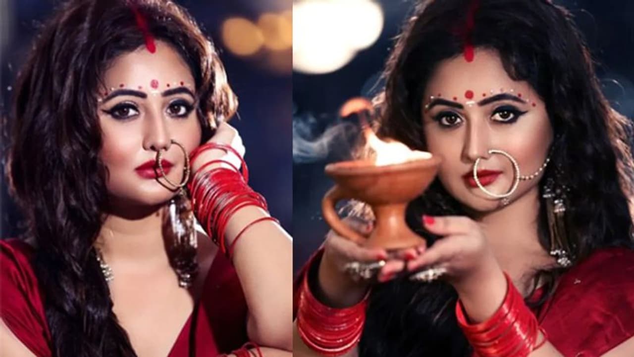 नवरात्रि के चौथे दिन मां दुर्गा के कूष्मांडा स्वरूप की पूजा की जाती है। इस मौके पर रश्मि ने डार्क रेड कलर की साड़ी पहनकर बंगाली लुक में फोटोशूट करवाया है।