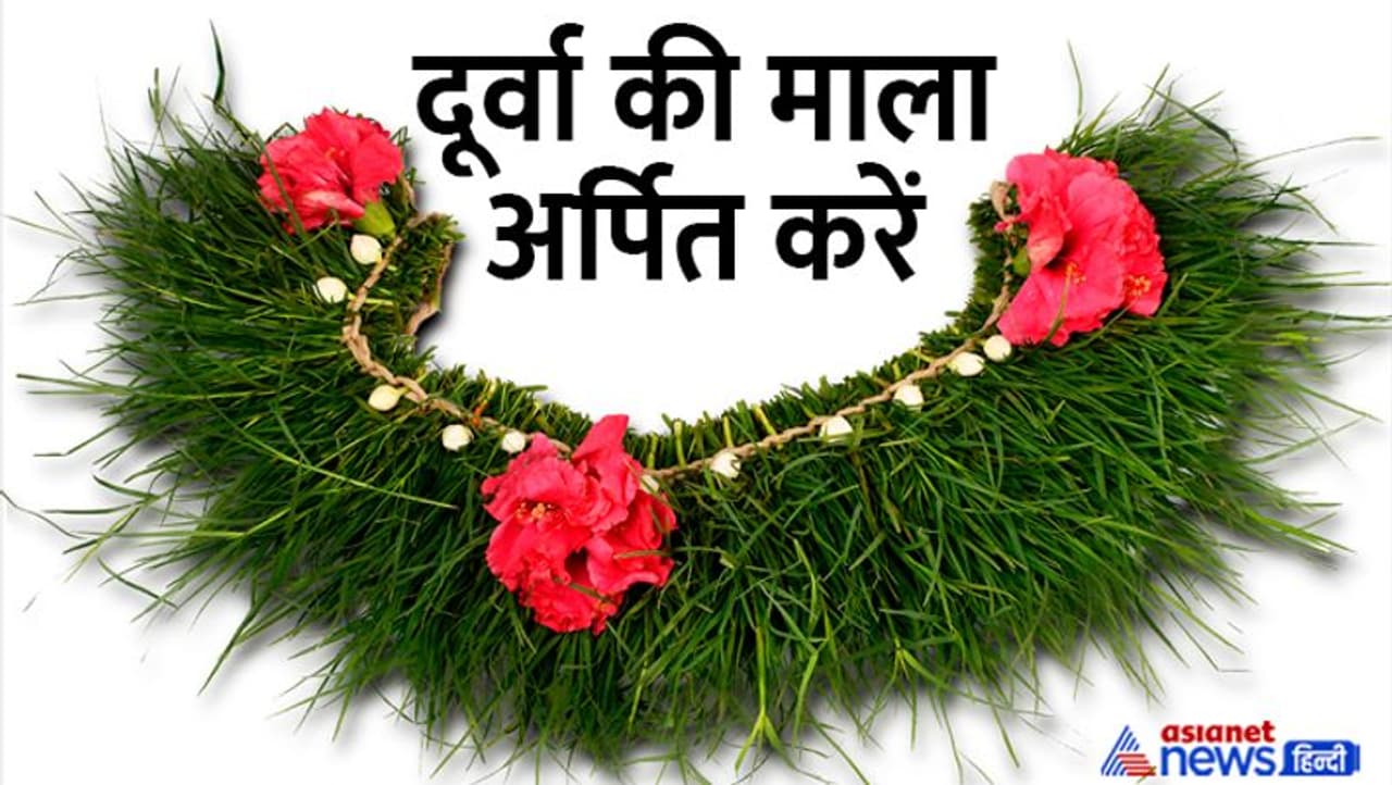 दूर्वा की माला अर्पित करें
