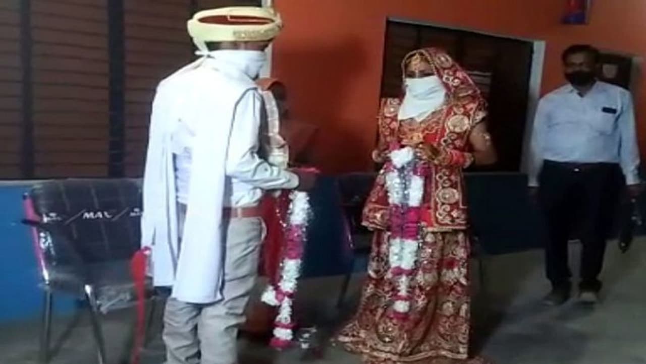 एसडीएम ने बताया कि इस दौरान सोशल डिस्टेंसिंग का ख्याल रखा गया। वर और वधू दोनों के मुंह पर मास्क लगा था।