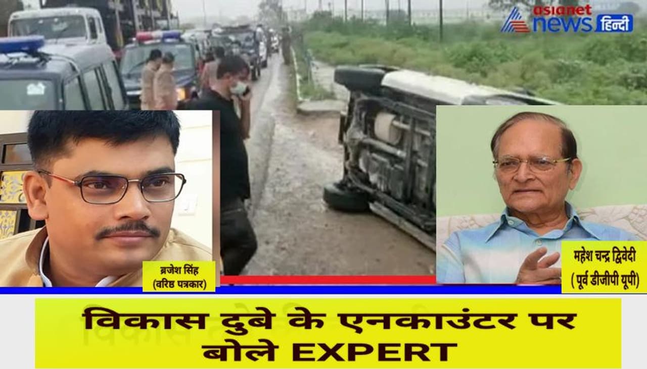 लखनऊ(Uttar Pradesh). कानपुर में 8 पुलिसकर्मियों की हत्या में मुख्य आरोपी यूपी का मोस्टवांटेड अपराधी विकास दुबे एनकाउंटर में ढेर हो गया। विकास दुबे को उज्जैन से गिरफ्तार किया था, जिसके बाद यूपी पुलिस व STF उसे लेकर कानपुर आ रही थी। कानपुर से तकरीबन 15 किमी पहले STF की गाड़ी पलट गई, जिसके बाद गाड़ी में बैठा विकास दुबे एक दारोगा की पिस्टल छीन कर वहां फायरिंग करते हुए भागने लगा। जवाबी कार्रवाई करते हुए STF ने उसे मार गिराया। विकास दुबे के एनकाउंटर पर ये पुलिस द्वारा बताई गई कहानी है। लेकिन बहुत से लोग इस कहानी को फ़िल्मी बताते हुए इसे पुलिस की चाल बता रहे हैं। विकास दुबे के एनकाउंटर पर एशियानेट न्यूज हिंदी ने यूपी के पूर्व DGP महेश चंद्र द्विवेदी और वरिष्ठ पत्रकार ब्रजेश सिंह से बात किया।