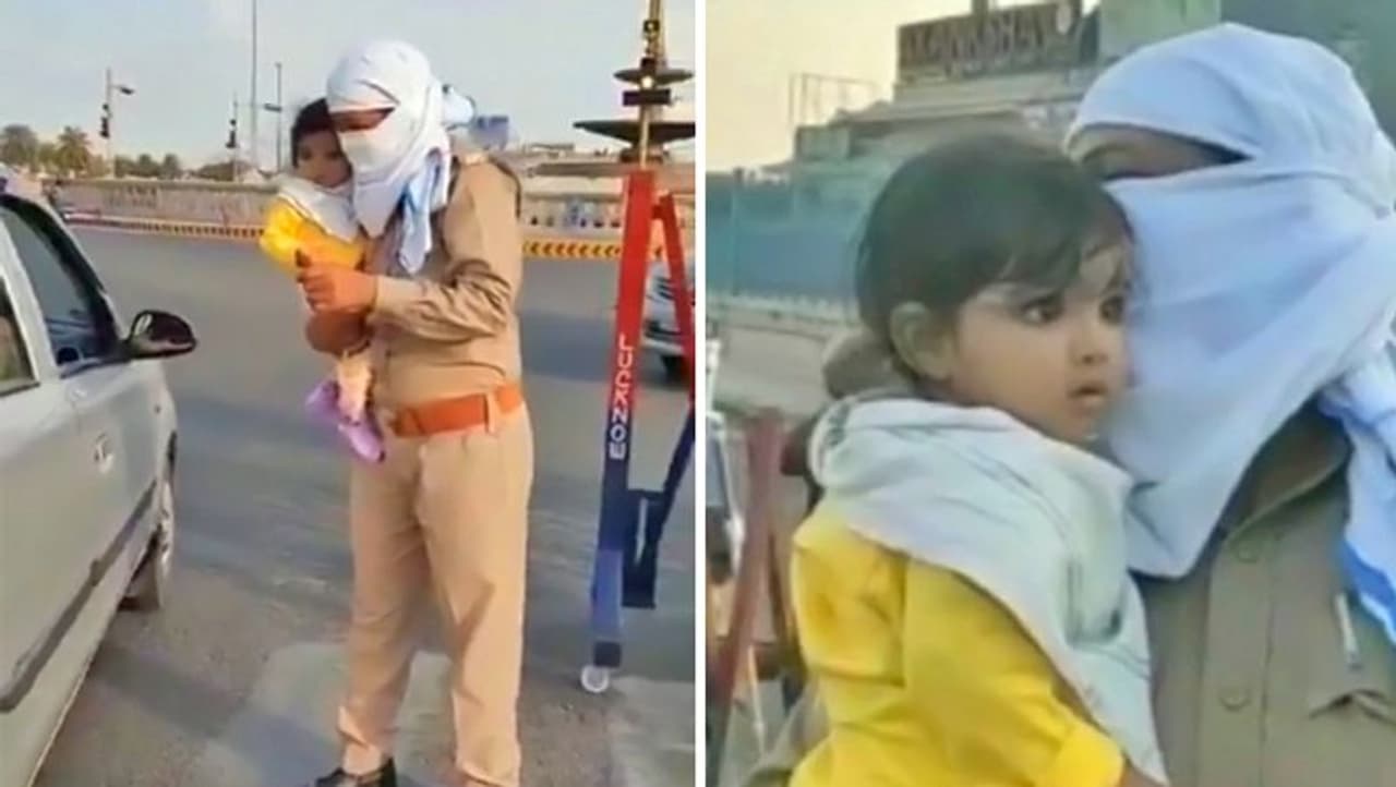 गोद में 9 माह की मासूम बेटी, कोरोना से जंग में मुश्किल ड्यूटी; महिला सिपाही के जज्बे को हर कोई कर रहा सलाम