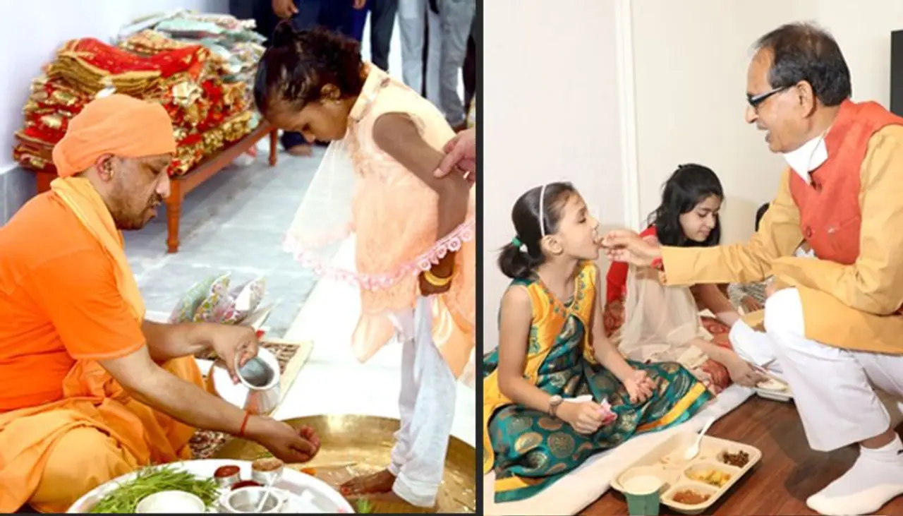 CM योगी और मुख्यमंत्री शिवराज ने कराया कन्या भोजन, तस्वीरों में देखिए किस तरह पैर धुलाकार खुद परोसा भोजन