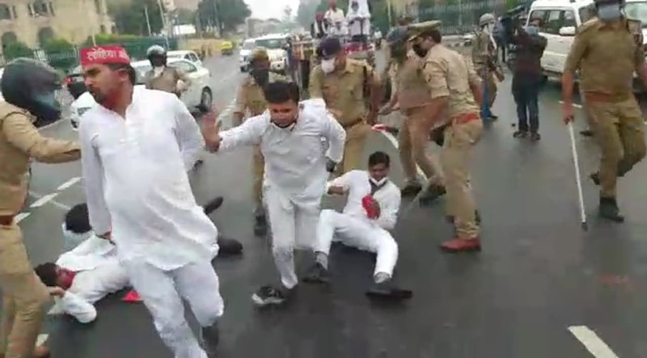 लखनऊ विधानसभा के सामने पुलिस ने किया सपाइयों पर लाठी चार्ज, डीजल पेट्रोल की बढ़ी कीमतों के खिलाफ दे रहे थे धरना