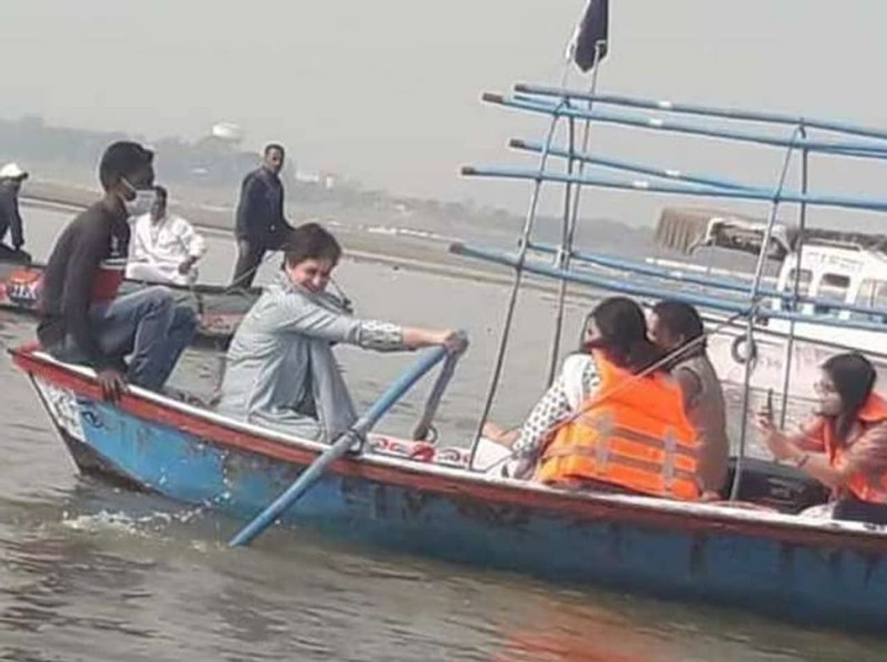 प्रियंका गांधी ने बिना लाइफ जैकेट नाव की सवारी की है। इस दौरान नाव पर उनकी बेटी के अलावा और भी कई महिला नेता सवार थीं, जो लाइफ ज ैकेट पहन रखीं थी।