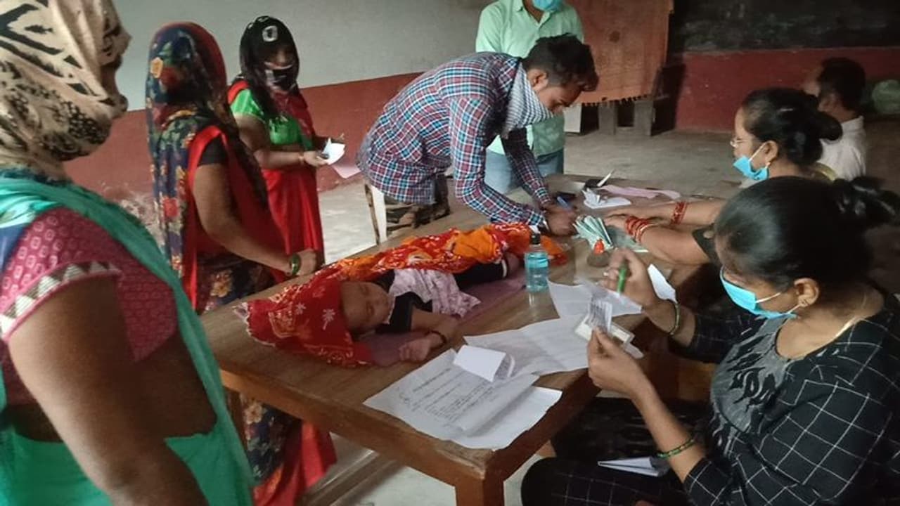 UP पंचायत चुनाव: कोरोना के खौफ में कुछ इस तरह हो रही वोटिंग, तस्वीरें देख कहेंगे यहां नहीं महामारी का डर