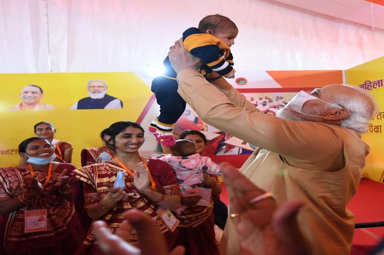 पीएम मोदी महिला सशक्तिकरण कार्यक्रम में पहुंचे थे। यहां उन्होंने महिलाओं से संवाद किया। इस दौरान पीएम मोदी ने बच्चों को देखकर उनसे दुलार करने लगे। पीएम ने एक-एक बच्चे को गोदी में उठाया और उनके साथ खेलते नजर आएं।