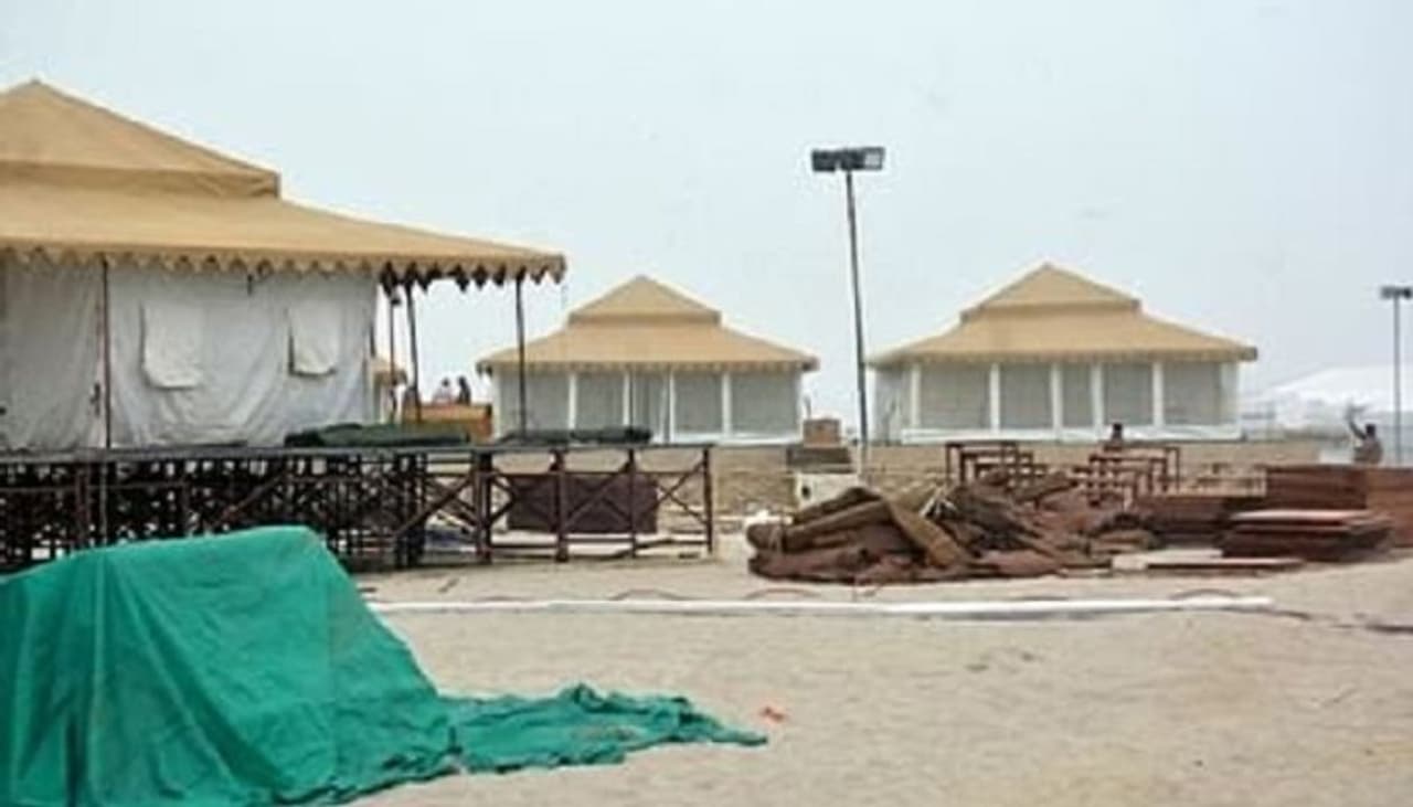 वाराणसी: गंगा पार बस रही टेंट सिटी में पर्यटकों की सुख सुविधाओं को ध्यान में रखते हुए खास इंतजाम किया गया है। यहां अध्यात्म से जुड़ने के साथ ही पर्यटकों के लिए मनोरंजन के सभी साधन उपलब्ध रहेंगे। टेंट सिटी में क्लब हाउस, स्पा और मेडिटेशन सेंटर के साथ ही पर्यटक यहां बड़े आराम से अपना समय व्यतीत कर सकेंगे। आइए फोटोज के जरिए जानते हैं टेंट सिटी से जुड़ी खास बातें