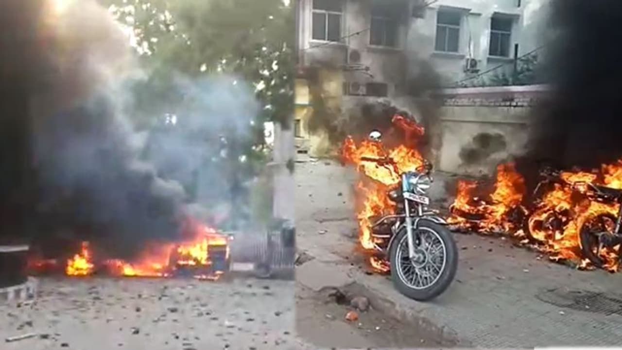 पुलिस सहित अन्य की गाड़ियों में आग लगा दी।