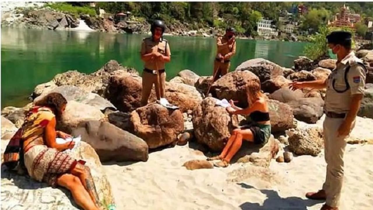 लॉकडाउन में गंगा किनारे टहलते दिखे 10 विदेशी, पुलिस ने थमाया कागज-कलम, 500 बार लिखवाई ये बात