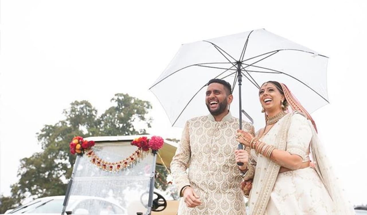 शादी के दौरान मेहमान अपनी गाड़ियों में बैठे हुए ही कपल की तस्वीर खींचते नजर आए। बीच में हुई बारिश ने भी सबको रोमांचित कर दिया।