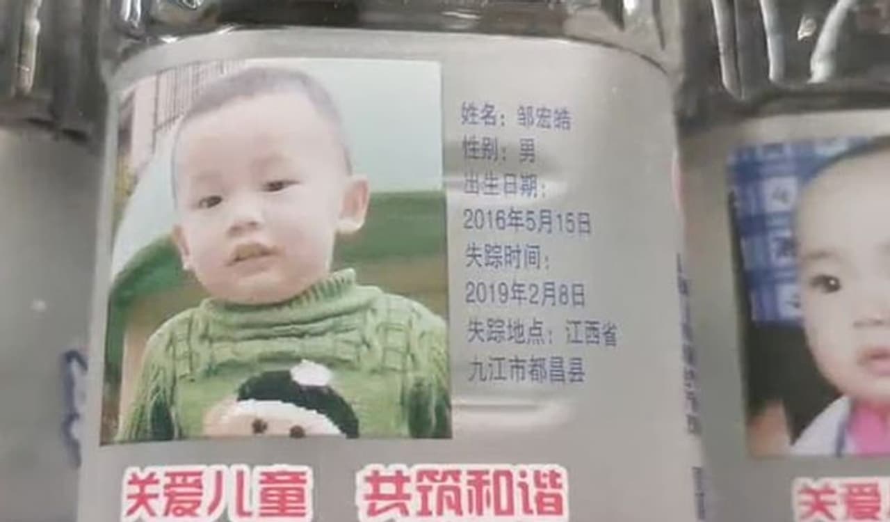 चीनी शहर क्सियन में सुपरमार्केट में बिक रहे पानी की बोतलों के ऊपर छोटे-छोटे बच्चों की तस्वीर छपी है। राशन दूकान से लेकर सुपरमार्केट में बिक रहे इन बोतलों पर गुमशुदा बच्चों की तस्वीर के साथ उनकी जानकारी भी दी गई है।