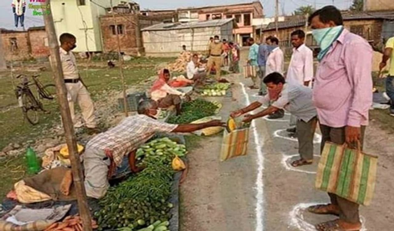 वायरल हो रही इस तस्वीर को कई बार शेयर किया गया। इसमें एक सब्जी मंडी में विक्रेताओं ने लक्ष्मण रेखा खींच दी। जिसके उस पार से लोग सब्जी लेते नजर आए।