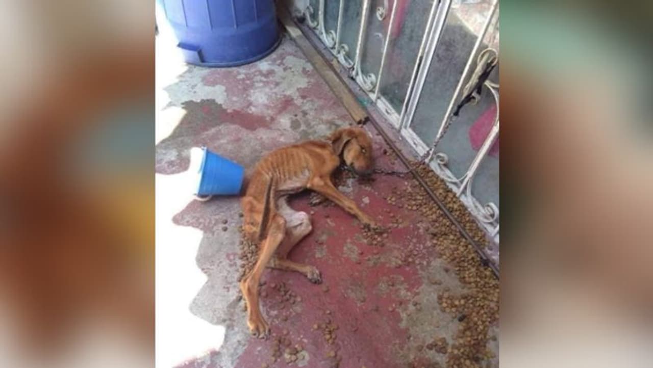 कुत्ते को खाना भी नहीं दिया जाता था। जिस कारण उसकी हड्डियां तक साफ़ दिखाई दे रही थी।