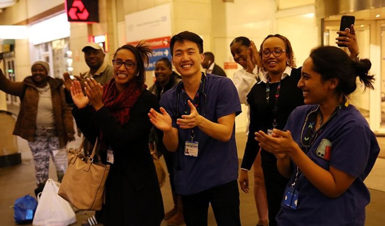 नेशनल हेल्थ काउंसिल के वर्कर्स ने सुपरमार्केट्स और मेडिकल्स के वर्कर्स के लिए तालियां बजाई।