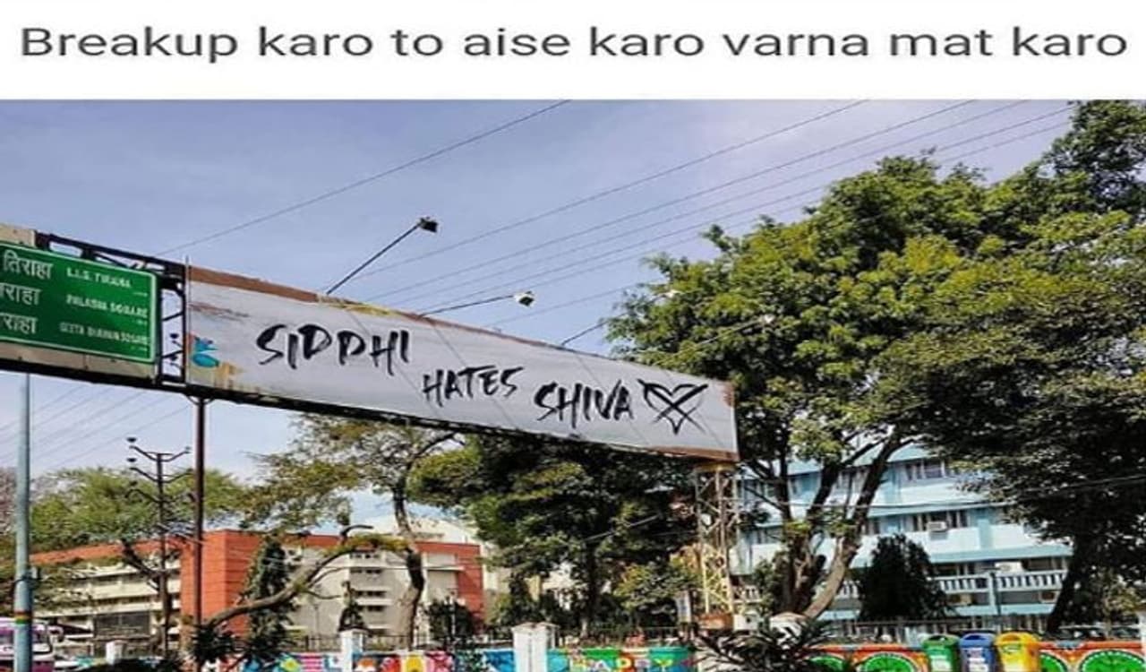 2021 में वैलेंटाइन वीक के दौरान सोशल मीडिया पर ये एक तस्वीर तेजी से वायरल हो रही है। तस्वीर में एक लड़की ने अपने प्रेमी से ब्रेकअप की सूचना बीच सड़क बोर्ड पर काले स्याही से लिखकर की। इस तरीके को देखकर लोगों ने कमेंट किया कि अगर ब्रेकअप करना है तो ऐसे करो, वरना मत करो।