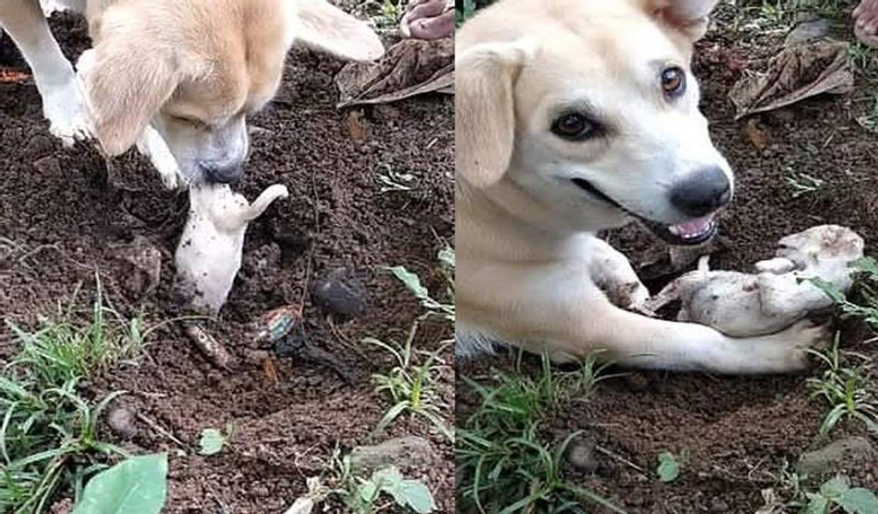 मां ने अपने बच्चे को कब्र खोदकर बाहर निकाला। उसने अपने पंजे से मिटटी हटाई और तब तक ऐसा करते रही, जब तक वो पपी को बाहर नहीं निकाल पाई।