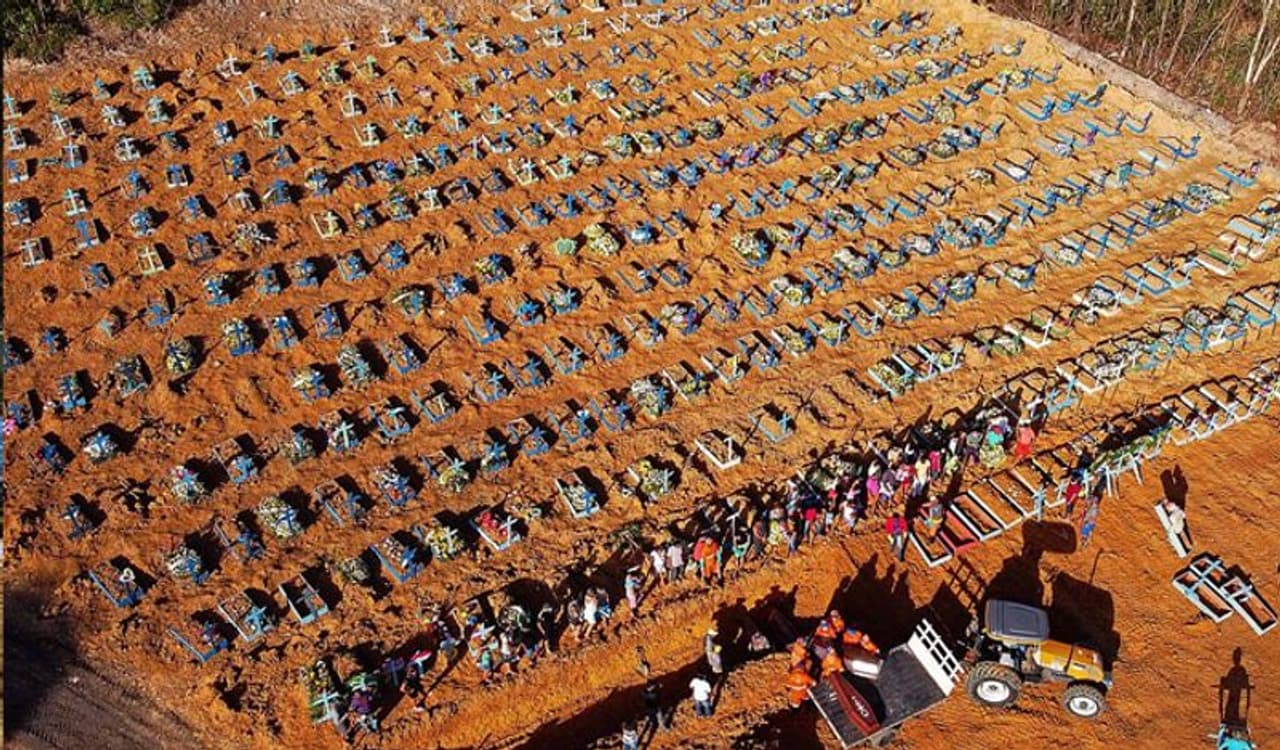 ब्राज़ील में मनौस में कोविड 19 से सबसे अधिक लोग मारे गए हैं। यहां नए कब्रिस्तान सिर्फ इसी वायरस से मारे गए लोगों के लिए बनाए गए हैं।
