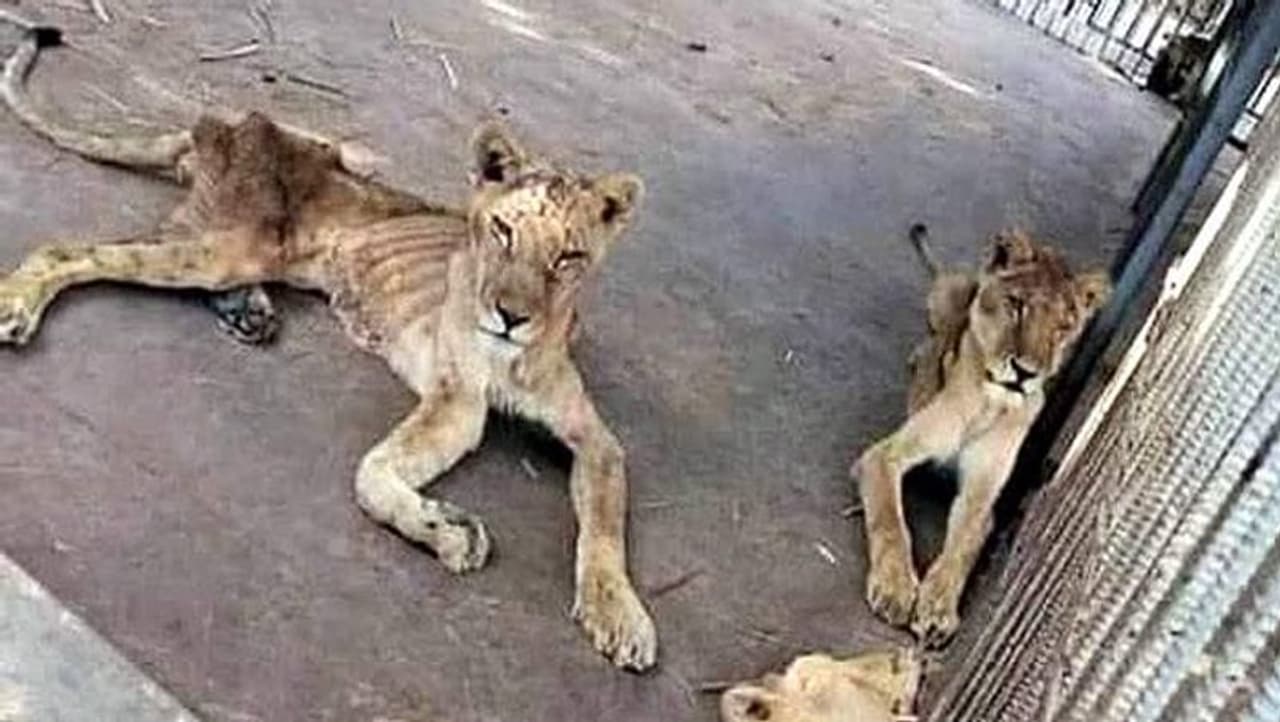 सूडान: ये देश फिलहाल आर्थिक तंगी से गुजर रहा है। देश में पैसों की कमी के कारण सभी चीजों के दाम काफी ज्यादा हो चुके हैं। लोगों के पास खाने के पैसे नहीं हैं। ऐसे में भला इंसान चिड़ियाघरों में बंद जानवरों का ध्यान कैसे रखेंगे? गरीबी के बीच इस देश की राजधानी खारर्तूम में अल-कुरैशी पार्क में पिंजरों में बंद शेरों की फोटोज सोशल मीडिया पर वायरल हो रहे हैं। इन जानवरों की हालत बेहद खौफनाक हो चुकी है। भूख के कारण इनका बुरा हाल है। जू का मालिक इन्हें खाना दे पाने में असमर्थ है। इसे लेकर सोशल मीडिया पर इनके लिए कैंपेन शुरू किया गया है।