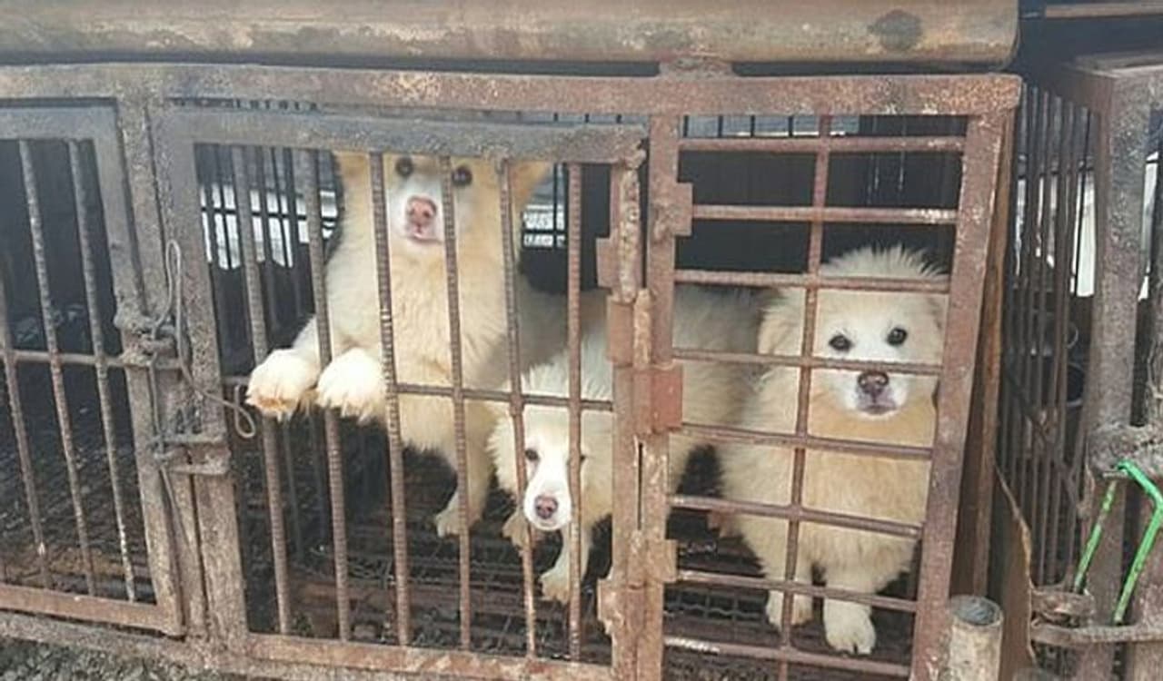 सोशल मीडिया पर नो टू मीट नाम के चैरिटी ग्रुप ने डॉग फेस्ट की कुछ तस्वीरें शेयर की है। इसमें सैंकड़ों कुत्तों को पिंजरे में दिखाया गया है। इन कुत्तों को काटने की तैयारी चलती नजर आ रही है।