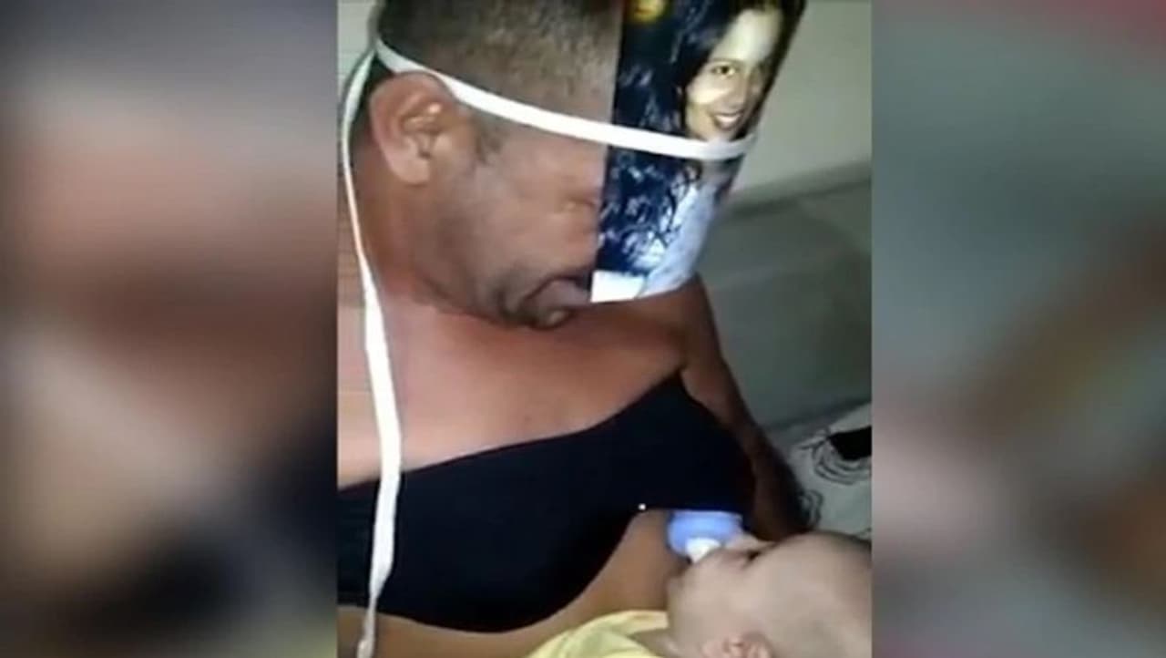 ब्राजील के रहने वाले समोएल फ्रेरा ने अपने इंस्टा पर वीडियो शेयर किया था। इस वीडियो में वो चेहरे पर पत्नी की तस्वीर का मास्क लगाए नजर आए। दरअसल, उनकी बीवी चर्च गई थी और बच्ची किसी और से दूध पीने को तैयार नहीं थी। ऐसे में पिता ने ये आईडिया निकाला। हालांकि, बाद में इस तस्वीर को कई फेक स्टोरीज के साथ जोड़कर भी वायरल किया गया।