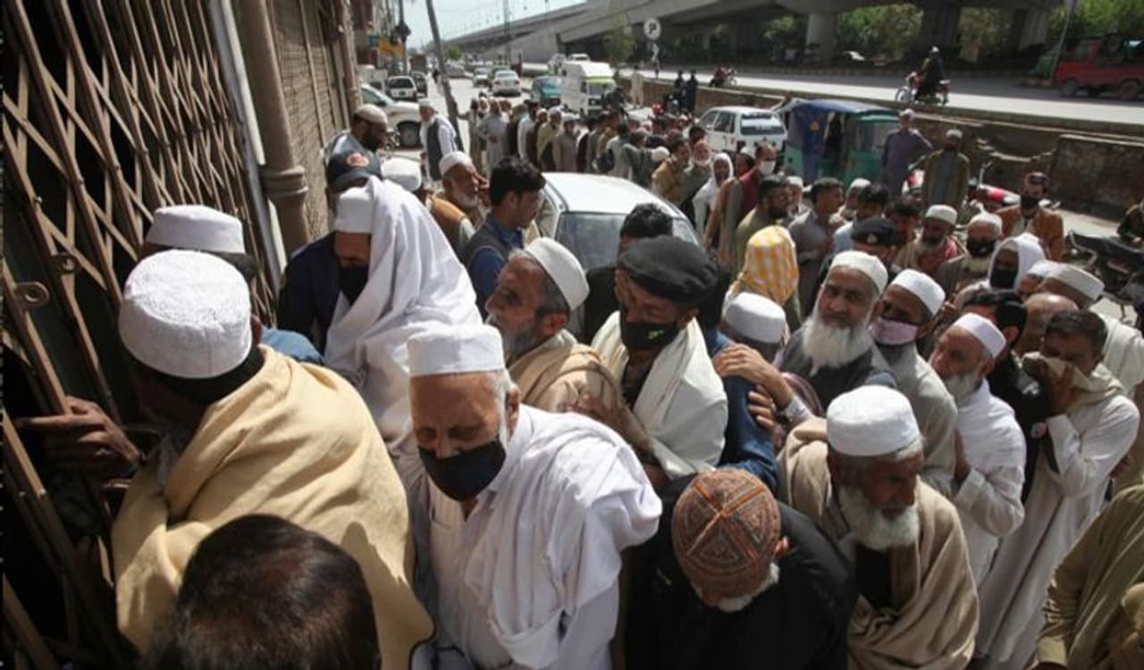 पेशवर में सोशल डिस्टेंसिंग को ठेंगा दिखाकर सरकारी कर्मचारी सैलरी लेने के लिए भीड़ लगाए हुए। यहां लोग कोरोना को मजाक में लेकर जिंदगी बिता रहे हैं।