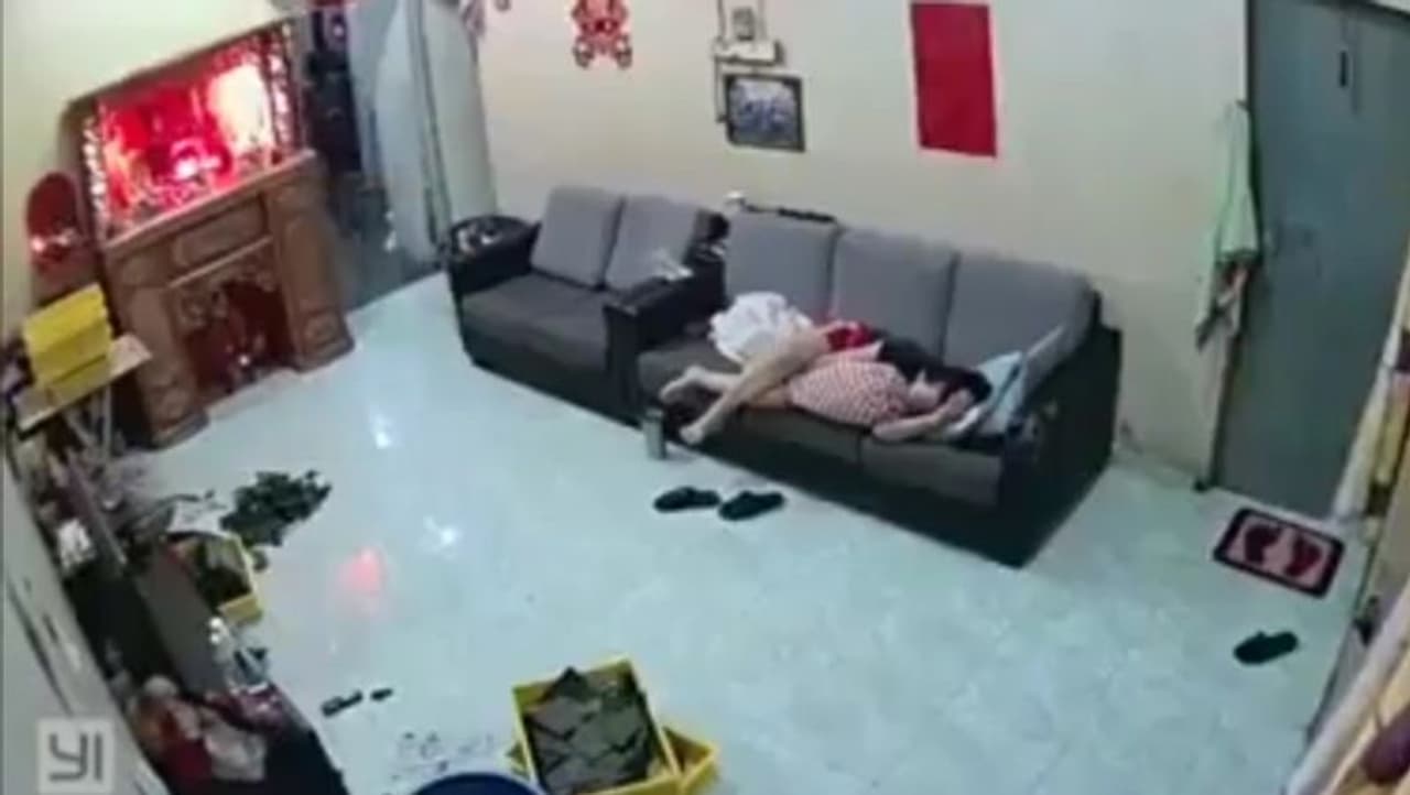 वीडियो की शुरुआत में एक महिला सोफे पर अकेली सोती नजर आई। कमरे में कोई भी नहीं था।