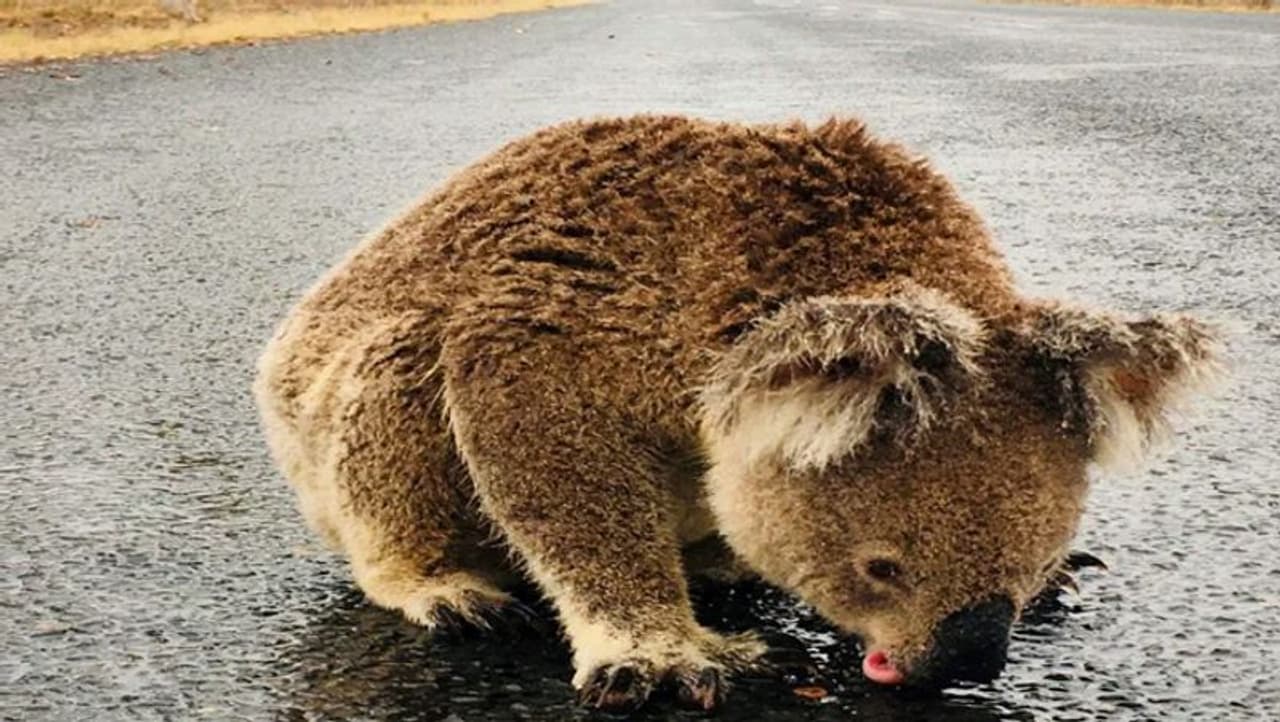 ऑस्ट्रेलिया: जंगलों में लगी आग ने सबकुछ तबाह कर दिया है। अरबों जानवर मारे गए। उनके आशियाने छीन गए। जिन जानवरों को बचा लिया गया, उनके लिए अब भूख-प्यास बड़ी समस्या बनकर सामने आई है। पूरी दुनिया ऑस्ट्रेलिया के लिए प्रार्थना कर रही है। इस आपदा की कई मार्मिक तस्वीरें सामने आई हैं। इस बीच सोशल मीडिया पर एक कोआला की तस्वीर वायरल हो रही है। आग से बचने के बाद अब इन जानवरों के सामने खाने-पीने की समस्या खड़ी हो चुकी है। वायरल हुई एक तस्वीर में कोआला रास्ते में जमा पानी चाटता नजर आ रहा है। कुछ दिनों से ऑस्ट्रेलिया में बारिश हो रही है। इस बारिश से थोड़ी राहत मिली है।