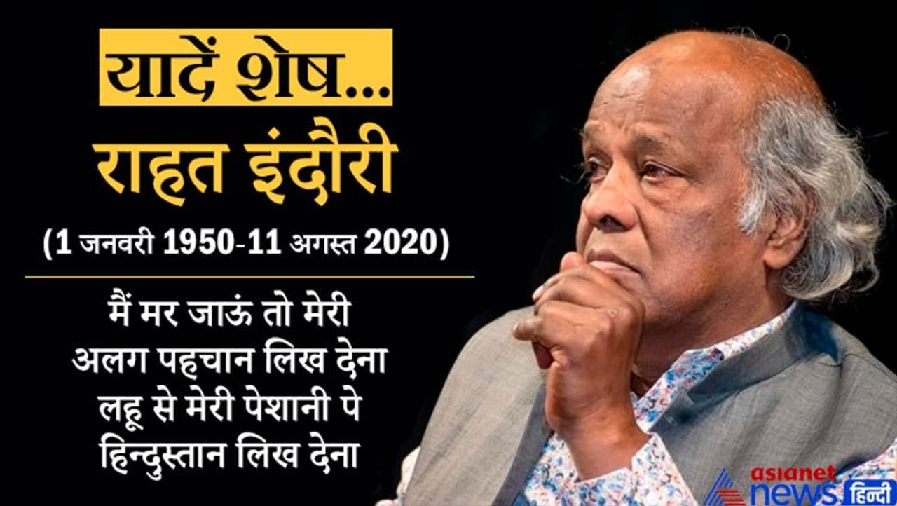 बता दें कि 11 अगस्त, 2020 को कोरोना के चलते उनका इंदौर में इंतकाल हो गया था। राहत इंदौरी देश के उन गिने-चुने शायरों में शुमार थे, जिनकी शायरी ने हिंदुस्तान को दुनियाभर में पहचान दिलाई।