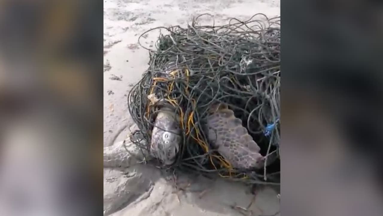 उसकी पूरी बॉडी लोहे के तार से बंधे थे। किसी मछुआरे ने अपना जाल समुद्र में फेंक दिया था। यही जाल कछुए की बॉडी में लिपटा था।