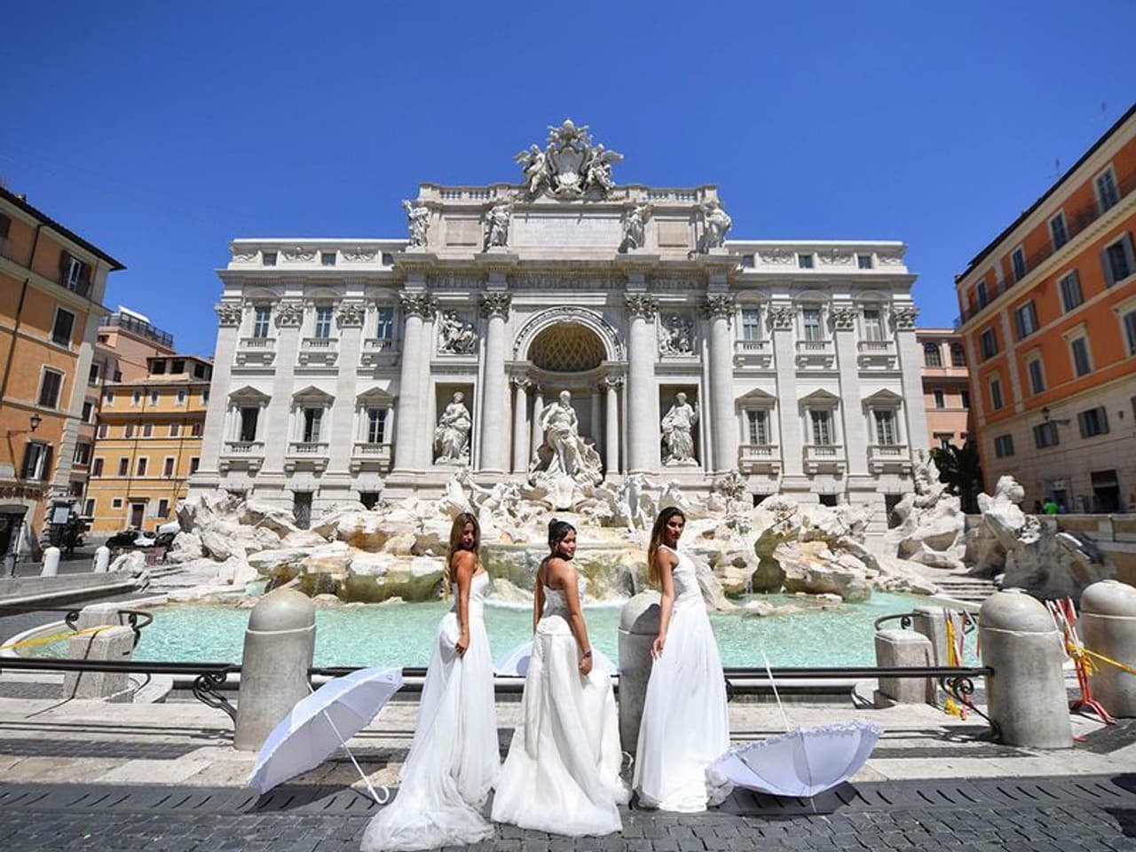 ये लड़कियां रोम के ट्रेवी फाउंटेन के पास इकट्ठा हुईं। सभी ने दुल्हन का लिबास पहना था।