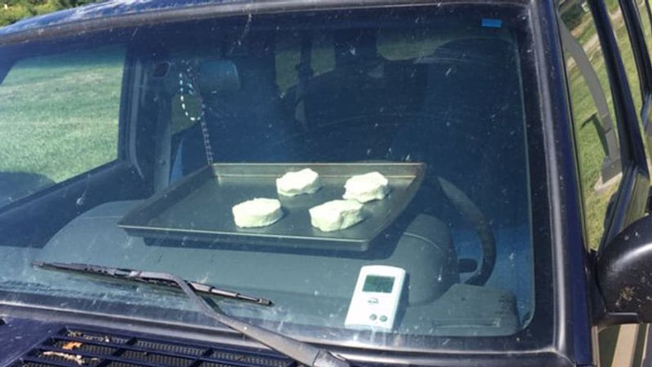 इस एक्सपेरिमेंट में कार की डैशबोर्ड पर एक ट्रे में कुछ बिस्किट्स रखे गए थे। लेकिन गर्मी इतनी ज्यादा प्रचंड थी कि ये बिस्किट्स वहीं बेक हो गए।